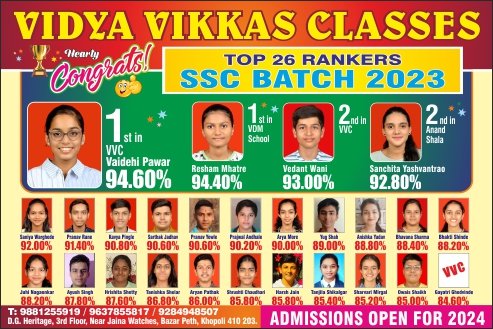 Consistent 100 % results since past 14 years is outcome of teams efforts by weekly test,orals,unit test, terminal exam and annual tests.